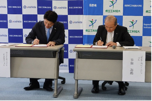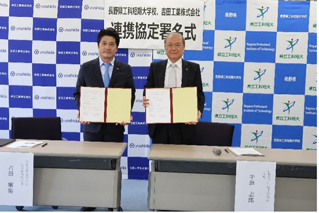 吉田工業株式会社と工科短期大学校は、教育、研究等の分野で相互に協力し、人材の育成と地域振興に寄与することを目的に、連携協定を締結することになりました。